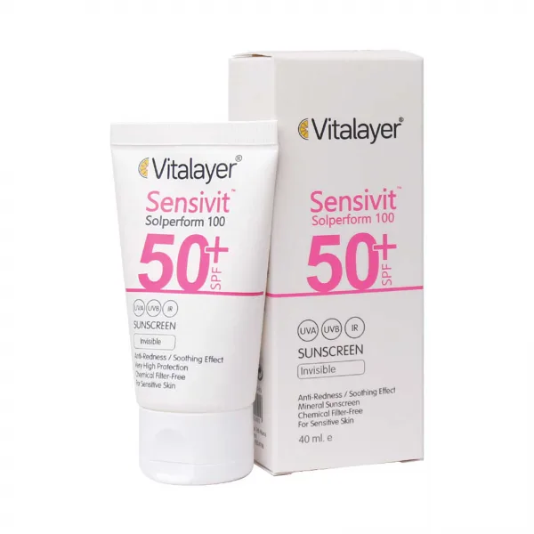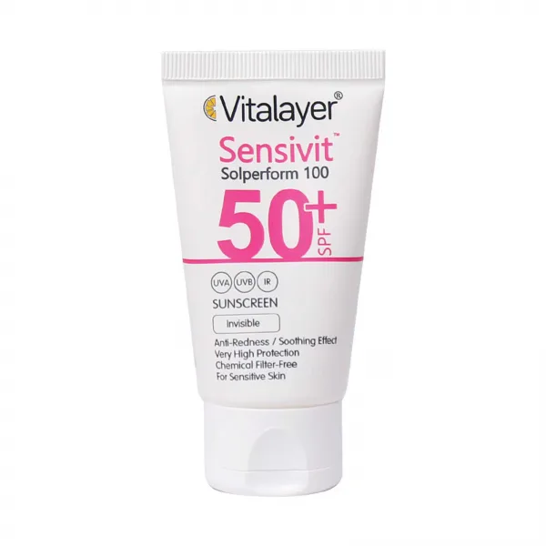 کرم ضد آفتاب SPF50 پوست حساس ویتالیر بی رنگ 50 میلی لیتر